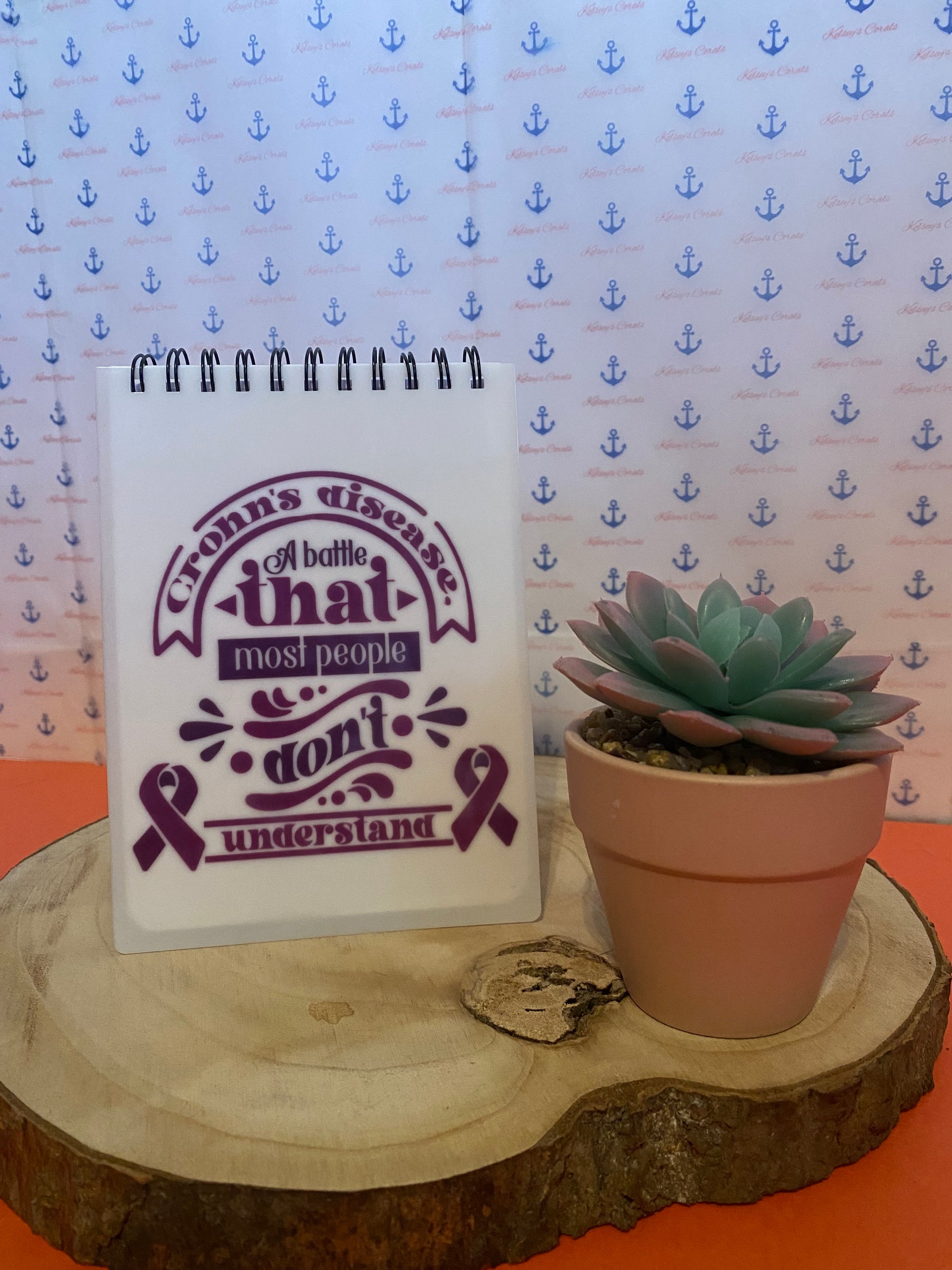 This A6 Crohn’s Awareness Notebook is perfect for raising awareness and organising your thoughts. Made with high-quality materials, this notebook is durable and easy to carry. The cover design and A6 size make it convenient and stylish. Stay organised and support a cause with this notebook.