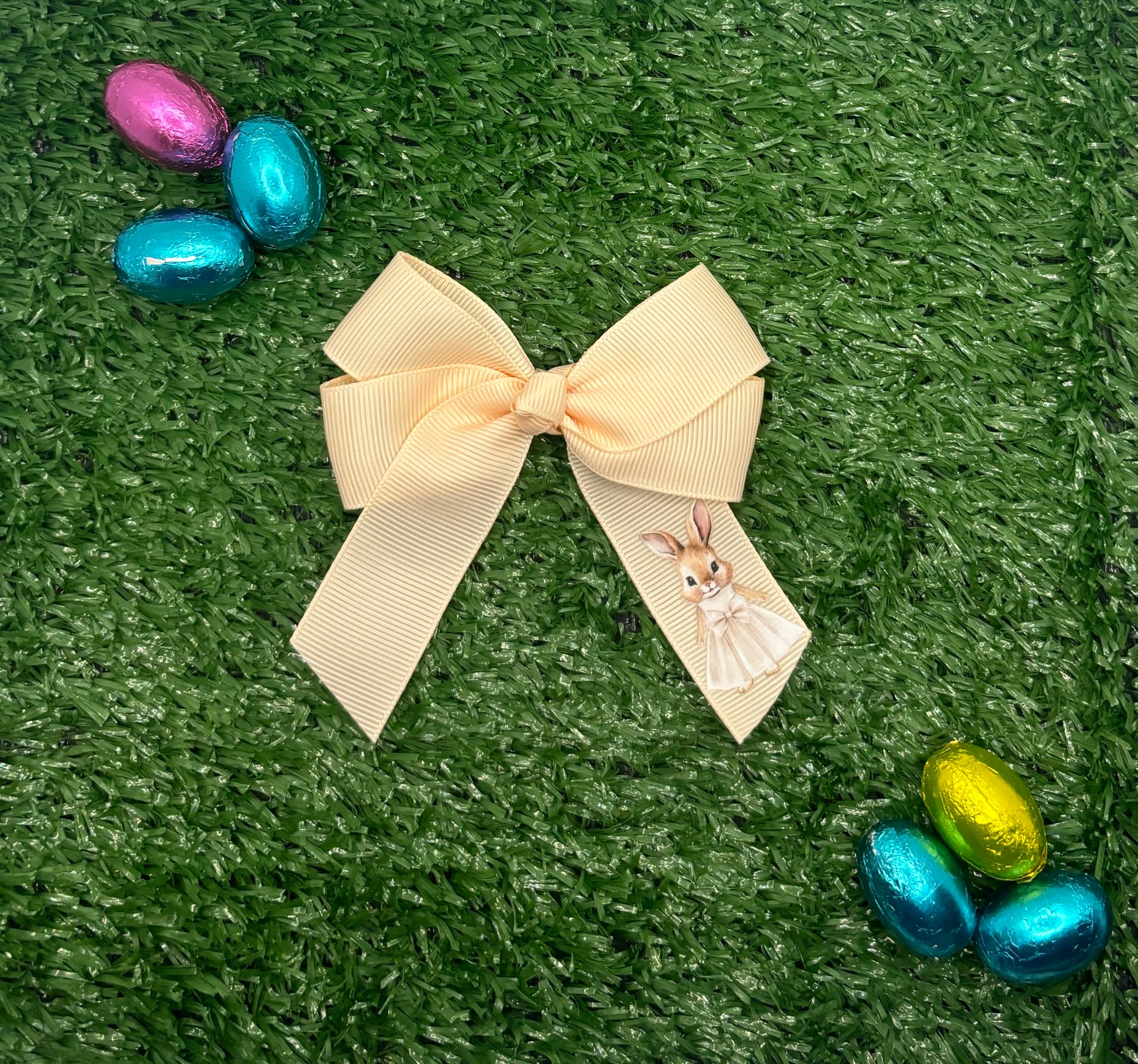 Celebrate Easter in style with our Personalised Easter Hair Bows. These hair bows are the perfect accessory to add a festive touch to any outfit. Handmade with care, our easter hair bows are customisable and make a unique gift. Upgrade your holiday outfit with our Easter Hair Bows.